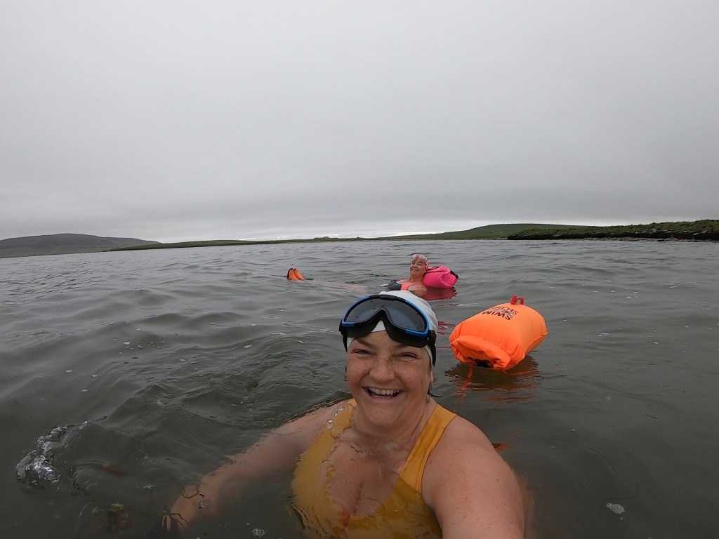 Sometimes it can be difficult to write sensitively when there is so much global difficulty going on. I really don’t know what the answer is. In my corner of the internet I’ve always written about the minutiae of my day, shared stories of my life in Orkney and the ups and downs of life.  Due to recent events, everyone is clamouring for a voice and I’m still in a place of learning. I could agonise over whether I should be saying something of value – but I’m no expert, or saying nothing – and is that insenstive?  There are so many voices, opinions and posts out there, I’m not going to add to it or bring any new insight or pearls of widom. So I’m going to stay in my lane, and continue to post what I know, which is mainly swimming selfies and spamming you all about book talk.  More on that later, but for now, I’m happily back in the water now certain restrictions have been lifted and while there’s no group swims, it’s good to catch up with friends from a 2m distance.