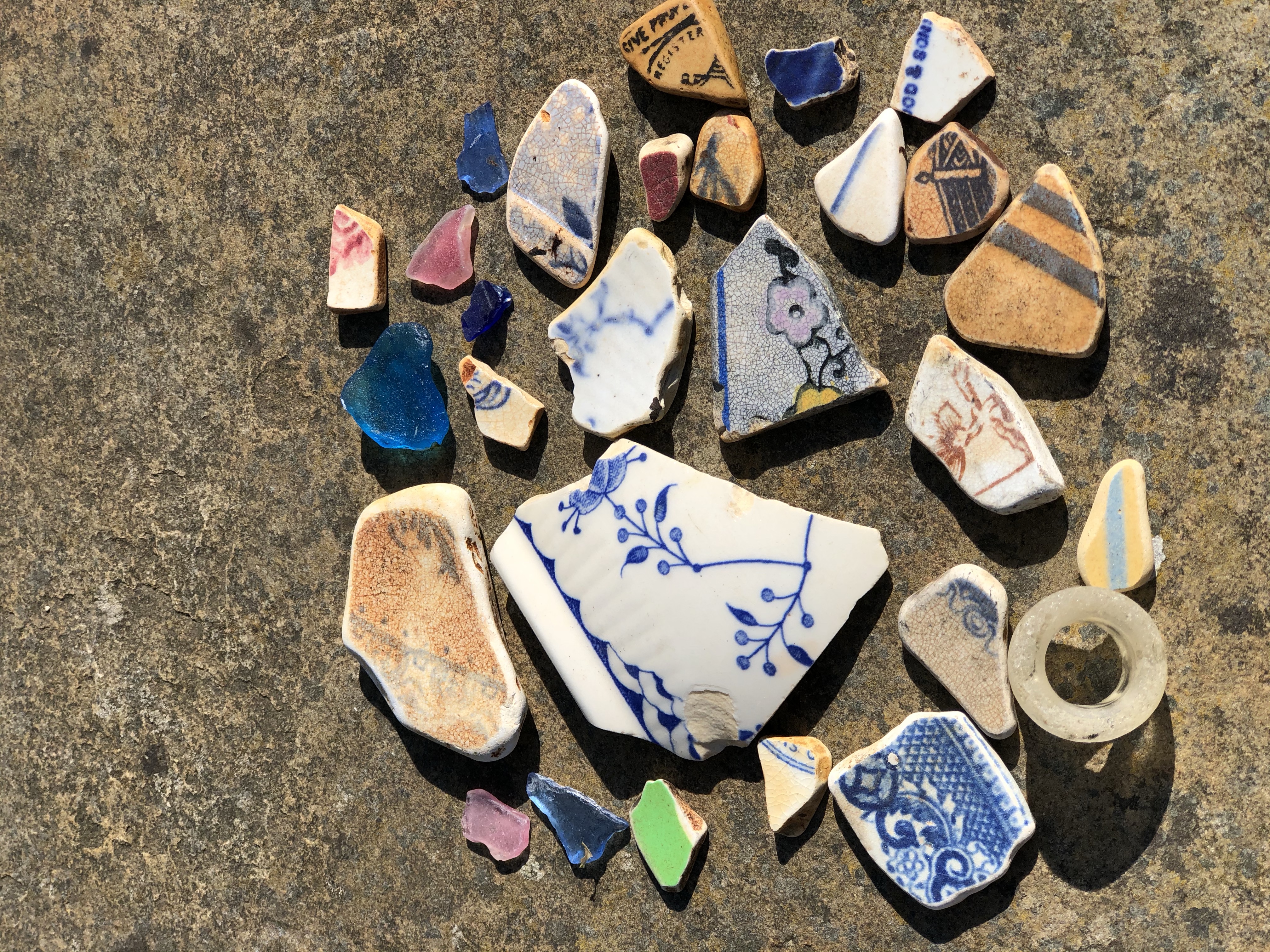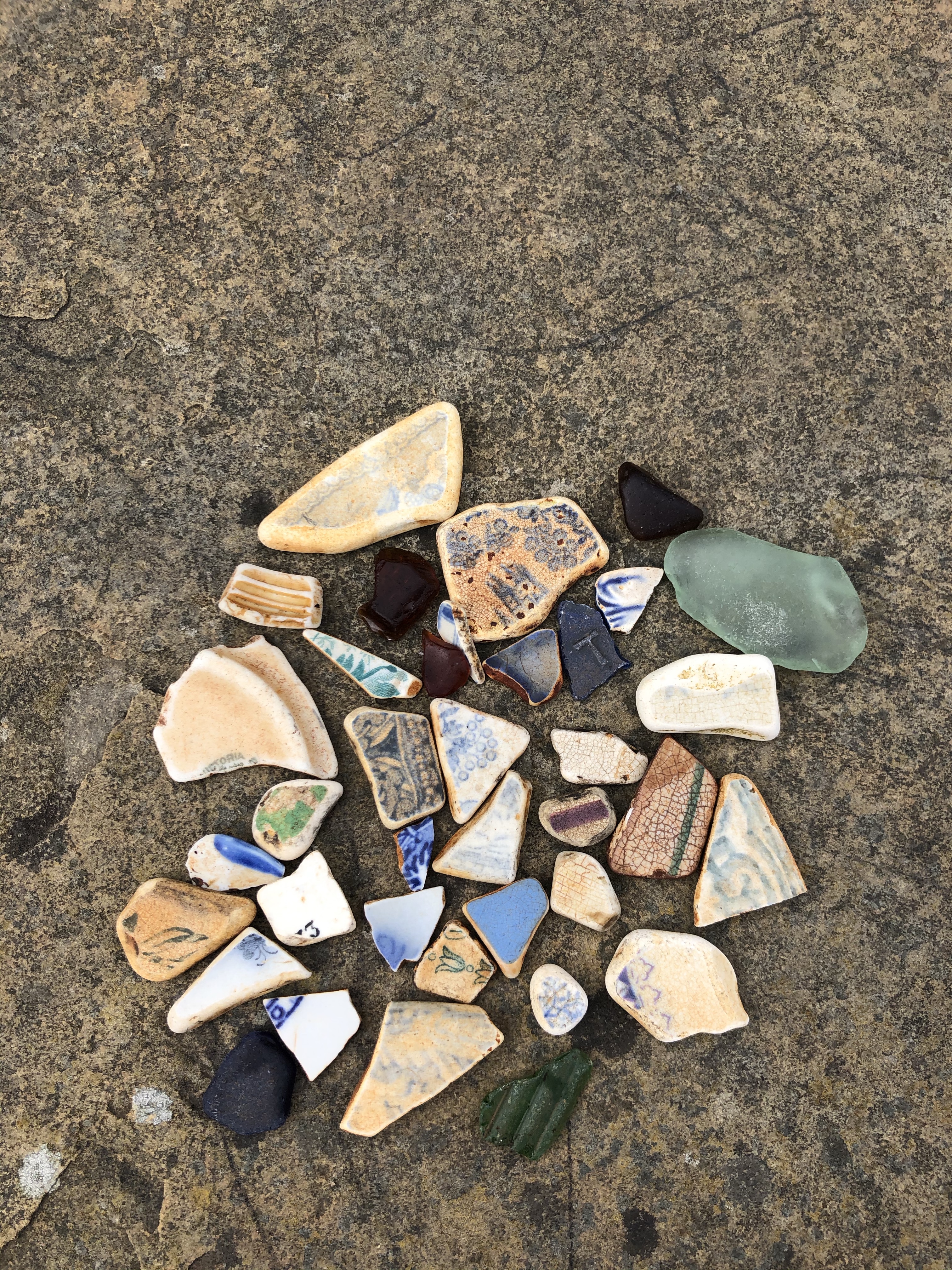 Nothing delights me more than to warm up after a swim with a beach comb. Tiny pieces of history in the form of sea pottery and sea glass is an absolute delight to find. Every single piece has a story to tell. While some call it junk, to me it’s a precious history lesson and a wonderful treasure hunt. In Stromness there is tons to be found, and as I was scouring recently I was told I was looking at a site next to what used to be a town hall, a pub and police station ‘so keep looking’ he cheered. Here’s what I collected this week. There’s so much sea glass I have to leave it, I only take the really rare colours now!