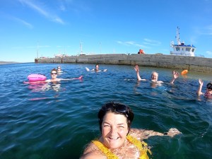 The pools remain closed in Scotland until end of August and our local pool will probably close until November due to funding. I love swimming outdoors but miss the pool. The water is currently the warmest it’s going to be and strangely we miss the cold water buzz that colder temperatures bring, and there’s also the dreaded jellyfish. But I continue to swim almost daily. I sometimes have to force myself out of bed to swim before work but never regret it. Due to pool closures just about everyone is hopping into the sea and it’s often a busy little place now. We still manage to socially distance and get the all-important selfie.